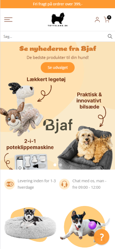 Med øje for at få både at vækste konverteringsraten samt den gennemsnitlige ordreværdi på webshoppen har vi hertil inkorpereret funktionalitet til at understøtte dette. Dette indebærer bl.a. optimering af navigation, filtrering samt søgefunktion, hvilket understøtter Tottelands brede sortiment inden for hundetilbehør.